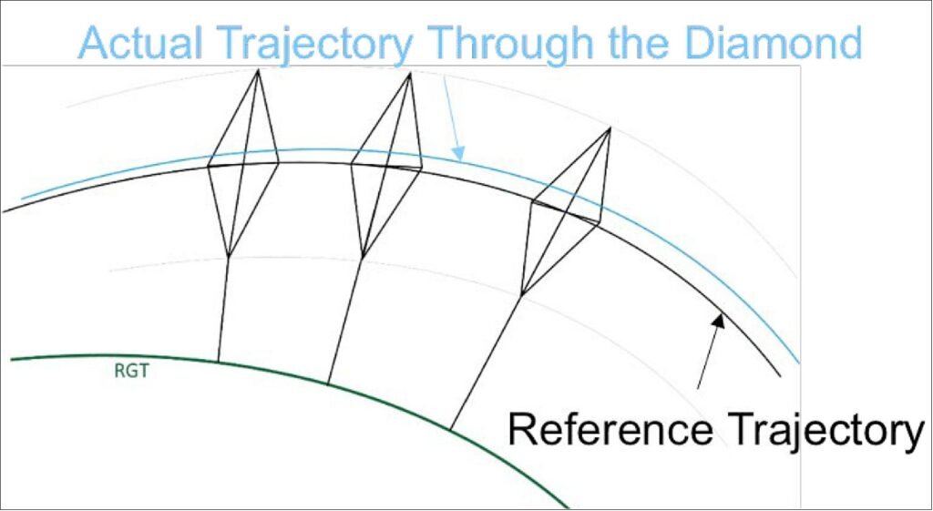 The center of the Diamond is defined by the 173-orbit reference trajectory (referred to as the Reference Science Orbit), which is fixed to the Earth’s surface and is exactly repeated every 12 days. The Diamond can be thought of as a fixed altitude, longitude and latitude profile that spans the entire repeat cycle; a conceptual representation of this corridor is shown in Figure 6. To maintain the Diamond, the JPL Navigation team plans on executing maneuvers over the long ocean passes (Atlantic and Pacific) as much as possible not to impact science data collection (Ref. 7).