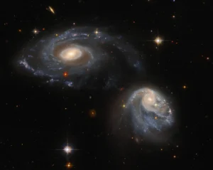 Overall, the interactions between galaxies play a crucial role in shaping the universe as we know it. They drive the formation of new stars, the growth of black holes, and the creation of tidal features. By studying these interactions, scientists can gain valuable insights into the evolution and dynamics of galaxies, as well as the larger-scale structure of the universe.